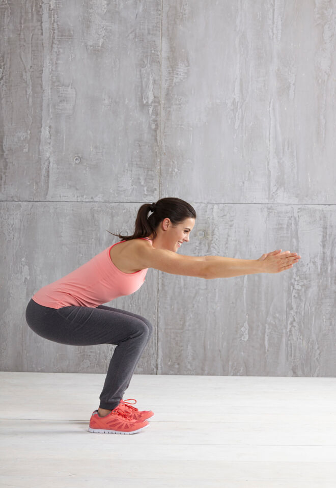 Jedes Mal, wenn du deinen Schreibtischstuhl verlässt, machst du ab jetzt einen Ausfallschritt. Das sorgt für einen Knack-Po! So geht’s: Stelle dich hüftbreit auf. Mache mit einem Bein einen großen Schritt nach vorne. Senke deinen Körper nach unten ab, bis dein hinteres Knie fast den Boden berührt. Ober- und Unterschenkel des vorderen Beins bilden einen rechten Winkel, dein Oberkörper bleibt aufrecht. Drücke dich wieder nach oben. Geschafft! Prima.