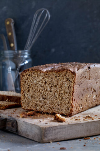 Für ein knuspriges Vollkornbrot wird das Roggen- oder Weizen-Vollkorngetreide mit Wasser, Hefe- oder Sauerteig, Salz und Gewürzen zu einem lockeren Teig verarbeitet. Wie du einen Grundteig zubereitest, erfährst du in unserem Grundwissen zum Brot backen.