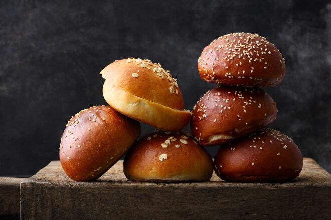 - Die auf den Schnittseiten angegrillten Bunhälften (innen kross, außen weich und fluffig) sind herzhaft und süß.