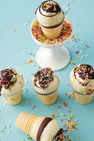 • Cake-Pops können ganz klassisch mit dunkler oder weißer Kuvertüre verziert werden. Wer es bunt mag, kann ganz einfach geschmolzene weiße Kuvertüre mit flüssiger Lebensmittelfarbe einfärben. Tipp: Gib pro 150 g Kuvertüre noch 10 g Kokosfett, dann klumpt die Schokolade beim Einfärben nicht.