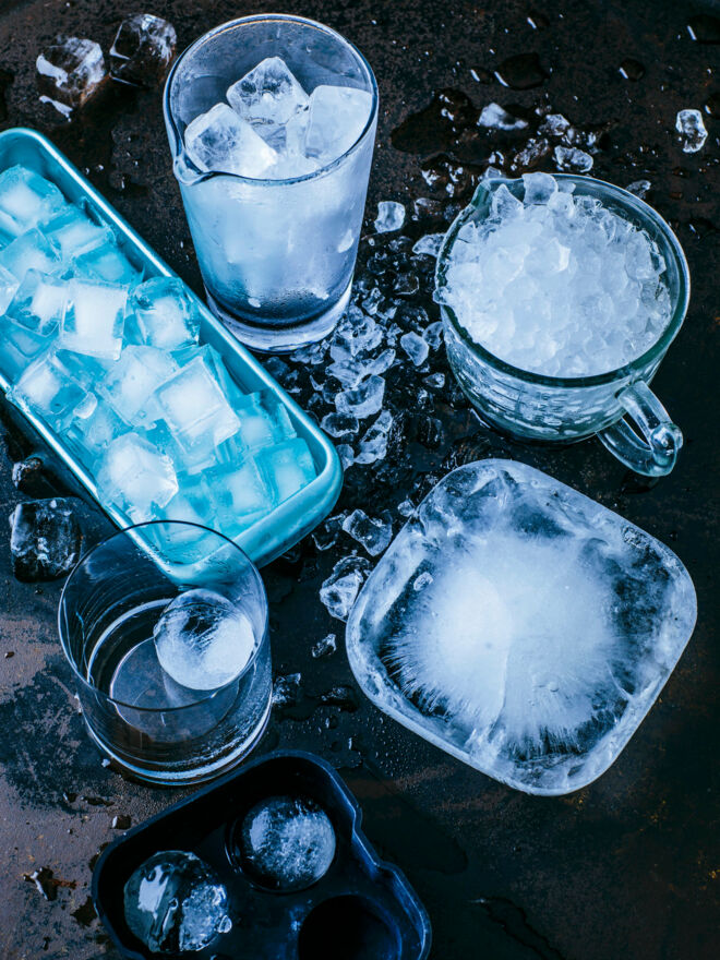 Typischerweise werden Eiswürfel in der heimischen Tiefkühltruhe eher milchig als glasklar. Dies liegt daran, dass das Wasser von außen nach innen gefriert, wodurch sich die Flüssigkeit dehnt und den Eiswürfel im Inneren sprengt. Für durchsichtige Eiswürfel solltest du das Gefrierfach auf die niedrigste Stufe, wobei -5 °C perfekt wären, stellen. Eine Alternative ist die Isolierung der Eiswürfelform.