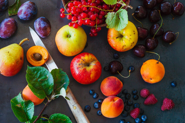 Ananas, Äpfel, Birnen, Blaubeeren, Blutorangen, Brombeeren, Feigen, Holunderbeeren, Mangos, Pfirsiche, Pflaumen, Quitten, Weintrauben, Zwetschgen