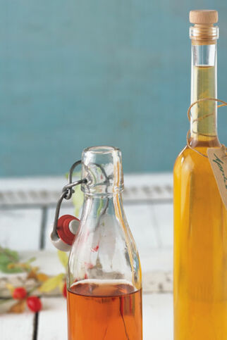 Likör ansetzen ist gar nicht schwer: Obst, Kräuter, Gewürze, Zucker, Honig und Alkohol in ein großes Gefäß geben, einige Zeit stehen lassen, danach abseihen und schon ist der Likör fertig.