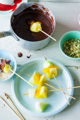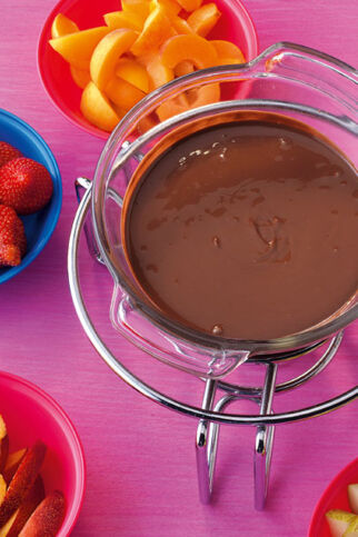 Serviere das Schokofondue deinen Gästen als Abschluss eines feinen Gästemenüs oder deinen Kindern auf dem Kindergeburstag - die Kleinen lieben es!