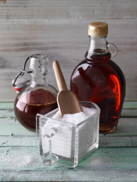 Befinden sich Sorbit (Zuckeralkohole) und Fruktose zur gleichen Zeit im Dünndarm, hemmt das die Aufnahmekapazität des Transportsystems und behindert die Fruktoseaufnahme zusätzlich. Während der Karenzphase solltest du auf alle Lebensmittel verzichten, denen Sorbit oder andere Zuckeralkohole zugesetzt wurden. Diese Zuckeraustauschstoffe sind besonders in kalorienreduzierten Lebensmitteln und Süßwaren sowie in solchen mit dem Werbeslogan »zuckerfrei« oder »free« zu finden. Zuckeralkohole erkennst du in der Zutatenliste an den Endungen »-it« und »-ol« – sie stecken hinter Namen wie Erythrit, Laktit, Maltit, Mannit oder Mannitol, Sorbit oder Sorbitol sowie Xylit. Lies also immer die Zutatenliste.
