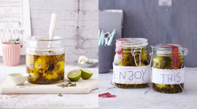 So etwas Gutes gibt es nicht zu kaufen: Die eingelegten Käsebällchen verdanken dem "wilden" Dost ihr tolles Aroma. Wer gleich die doppelte Menge zubereitet, kann ein paar Gläser verschenken. Und mit unserer Idee wird das Eingemachte ganz schnell zum Fashion-Food-Geschenk.