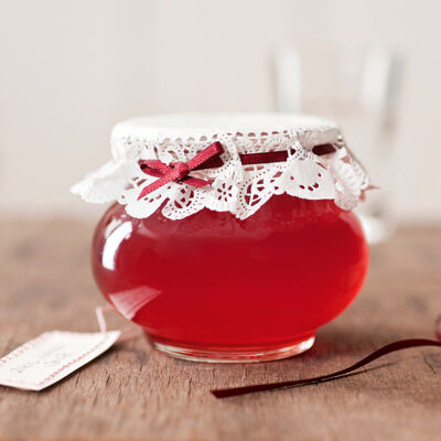 Für hübsche Einmachgläser: Je nach Glas kleine oder große Deckelhauben aus dünnem Papier, z.B. Seidenpapier, auschneiden und mit einem farblich passenden Bändchen auf dem Glas befestigen. Wer seine Gläser besonders edel verschließen will, kann die Deckelhauben auch aus feinem Stoff oder Spitze ausschneiden.