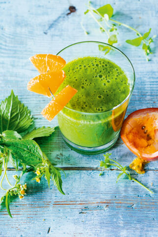 Warum wird eigentlich davon gesprochen, dass uns grüne Smoothies gesund, fit und leistungsfähig machen? Welches Gesundheitsplus steckt denn nun wirklich in den angeblichen Powerdrinks? Die Antwort: Die grünen Blätter haben mit Abstand den höchsten und vielfältigsten Vitalstoffgehalt aller Lebensmittel. Außerdem enthalten sie Chlorophyll – ein wahres Wundermittel. Der grüne Pflanzenfarbstoff ist nämlich das „flüssige Sonnenlicht“ und bringt Lebensenergie in die Zellen.