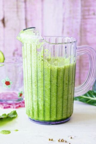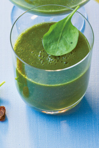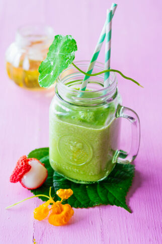 - Achte darauf, dass der Smoothie zu einem Großteil aus grünen Blättern besteht. Das Pflanzengrün enthält nämlich die gesundheitsfördernden Stoffe, auf die es ankommt.