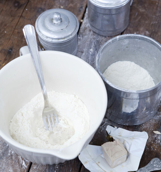 Stelle für die Teigzubereitung erst alle Zutaten bereit. Die Muffins gehen nämlich nur gut auf, wenn du den Rührteig zügig zubereitest. Mische trockene Zutaten in einer Schüssel, rühre feuchte Zutaten in einer zweiten Schüssel glatt und rühre die trockenen Zutaten anschließend nur so lange unter, bis sie feucht sind.
