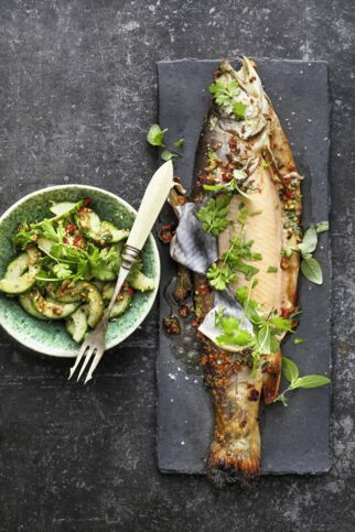 Karpfen, aber auch andere Fische kannst du gut im Ganzen zubereiten und servieren. So können am gedeckten Ostertisch alle selbst vom Fisch nehmen. Das Essen wird – ganz in der christlichen Tradition – geteilt.