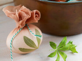 Eine alte und ganz simple Methode, Eier natürlich zu färben, ist, sie in Zwiebelschalen zu kochen. Sammel am besten schon vor Ostern die äußeren, papierdünnen Schalen von braunen und roten Zwiebeln. Richtige Kunstwerke werden die Ostereier, wenn du sie beim Färben noch mit einem Blüten- oder Blattmuster verzierst.