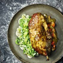 Knusprige Honigente mit Orangenfüllung und Wirsinggemüse