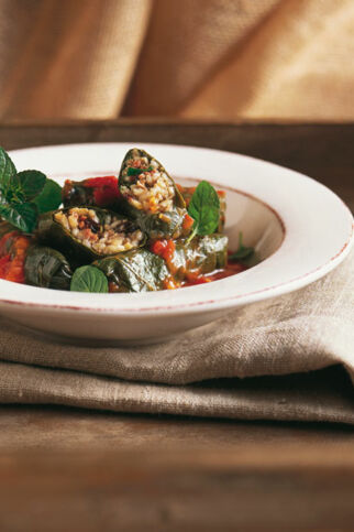 Wer die türkische oder griechische Küche ein wenig kennt, hat diese herzhaft gefüllten Weinblätter sicher schon mal gegessen. Die aserbaidschanische Art nennt sich Dolma und ist meist mit würzigem Hackfleisch, Kräutern und Reis gefüllt. Doch nicht wundern: In manchen Regionen des Landes serviert man dir bei dieser Vorspeise statt Weinblättern gefüllte Paprika, Auberginen, Kohlblätter oder Äpfel.