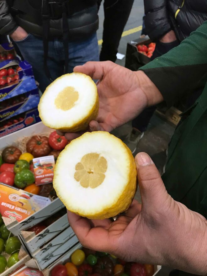 Und was durften wir auf dem Markt nun entdecken? Ingo zeigte uns, warum es sich bei Ananas lohnt, etwas tiefer in die Tasche zu greifen und reif gepflückte Flugananas statt unreif geernteter Früchte zu kaufen. Dieser betörende Duft aus bereits einem Meter Entfernung, und dann erst ihr zuckersüßes Aroma! Und auch der Geschmackstest verschiedener Cherrytomaten bewies einmal mehr, dass Tomaten Sonne statt Gewächshäuser benötigen, um nicht nur nach “rotem Wasser” zu schmecken. Wir durften auch Exoten, die wir bisher noch nicht auf dem Teller liegen hatten, entdecken und probieren: Kennst du schon Cedrizitronen, auch Cedro genannt? Diese extragroßen, italienischen Zitronen können im Gegensatz zu ihren kleinen Verwandten komplett, also inklusiver weißer Schicht und Schale, gegessen werden und haben uns mit ihrem milden Zitrusgeschmack begeistert. Hauchdünn aufgeschnitten, serviert zu gegrilltem Fisch oder Büffelmozzarella – ein Sommertraum!