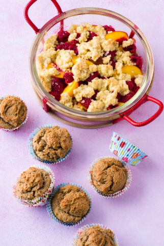 - Bevor du den Kuchen backst, kannst du als Garnitur noch eine weitere Banane in Scheiben schneiden und auf den Teig legen. Damit der Kuchen einen schönen Glanz bekommt, kannst du ihn mit Ahornsirup und Zitronensaft bestreichen. Jetzt nur noch ca. 25 Minuten im Ofen backen – fertig ist die Köstlichkeit!