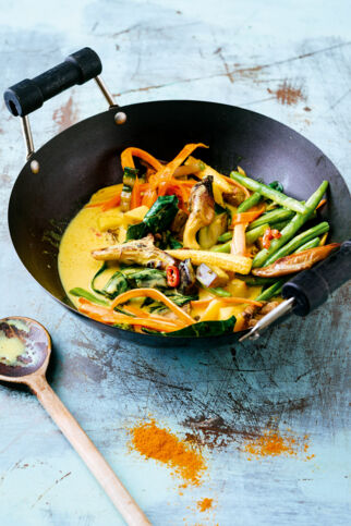 Wer vorausschauend plant und die frischen Zutaten geputzt und geschnitten bereitstellt und nicht erst beim Kochen nach Currypaste, Kokosmilch und Co. suchen muss, der kann sich auf das Wesentliche konzentrieren und punktgenau garen, raffiniert würzen und fürs Auge anrichten.