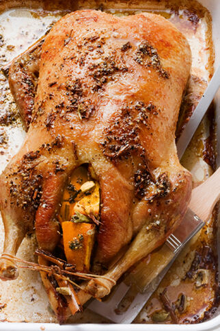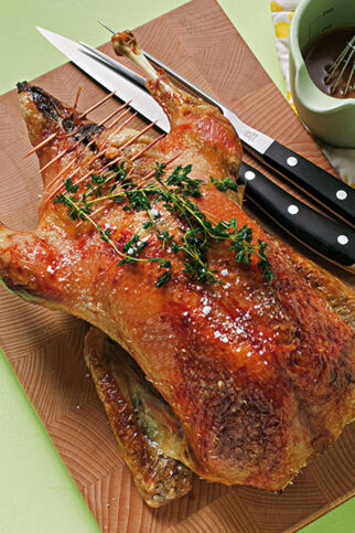 Knusprige Honigente mit Orangenfüllung und Wirsinggemüse