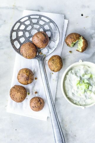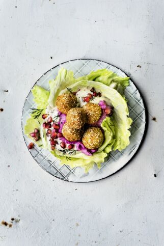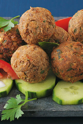 Die klassische Falafel-Variante wird aus pürierten Kichererbsen zubereitet, aber du kannst die Falafel-Bällchen auch aus Linsen, Erbsen oder sogar Blumenkohl herstellen.