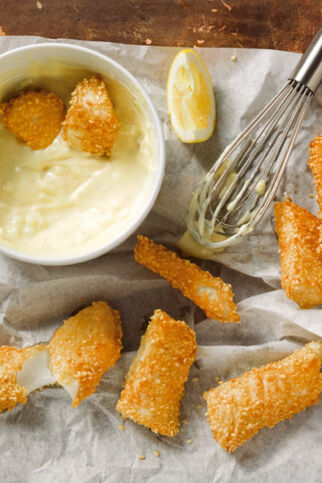 Statt einer Panade aus Ei, Mehl und Semmelbröseln kannst du auch eine Panade aus Sesamsamen machen, damit werden deine selbst gemachten Fischstäbchen Low Carb und kalorienärmer. Und wenn du auf Weizen und Eier verzichten möchtest, funktioniert das Rezept auch mit glutenfreiem Mehl und Eiersatz.