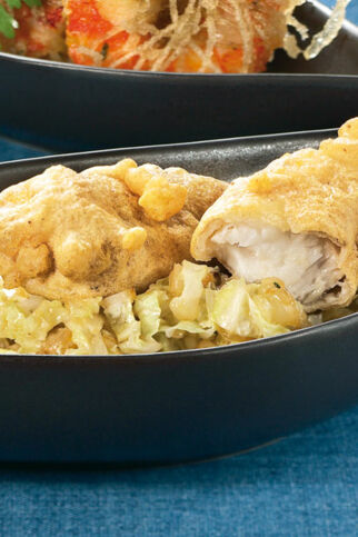 Den Fisch musst du zunächst abspülen, trocken tupfen (ggf. noch vorhandene Gräten entfernen) und dann in ca. 2 × 5 cm große Stücke schneiden. Würzen kannst du sie nach Belieben, etwa mit Salz und Pfeffer oder du säuerst sie für ein paar Minuten mit ein paar Tropfen Zitronensaft.