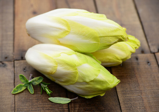 - Den Chicorée waschen, putzen und möglichst fein schneiden und unter die Sahne und die Milch geben. Alles kurz aufkochen und ein wenig abkühlen lassen.