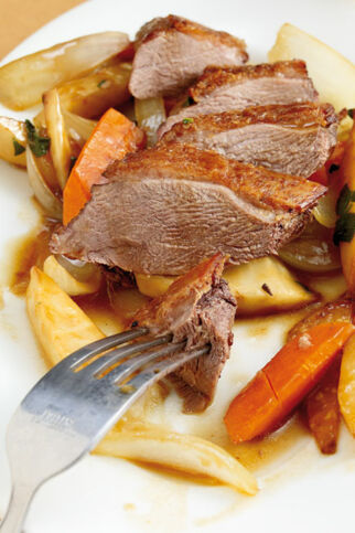 Man legt die Gans übrigens auf den Rücken, weil man so besonders viel knusprige Haut bekommt und das meiste Fleisch zum Tranchieren vor sich hat. Wie du eine Gans richtig tranchierst, erfährst du in unserem Video.