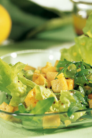 - Der gewürzte bzw. marinierte Tofu ist je nach Würzung geschmacklich unterschiedlich. Eine kräftige Marinade erhältst du zum Beispiel durch das Verquirlen von Gemüsebrühe, Sojasauce, Austernsauce, Sesamöl, Zucker, Salz und Pfeffer. Der Tofu sollte mindestens 30 Minuten darin mariniert werden. Du kannst zum Beispeil leckeres Wok-Gemüse mit mariniertem Tofu aupeppen.