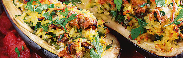 Auberginen können sehr vielfältig zubereitet werden. So schmecken sie zum Beispiel im Auflauf oder zu Nudeln und erinnern einen vom Geschmack her immer etwas an den Nahen Osten. Eine besondere Zubereitungsart des eiförmigen Gemüses ist es, sie zu füllen und zu überbacken, denn zu dem feinen Auberginenaroma passt einfach alles.