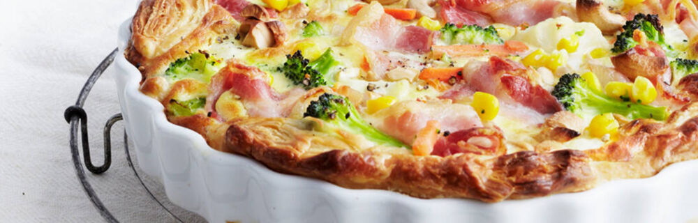 In unserer Rezeptsammlung findest du Rezeptideen für Kuchen, Quiches, Tartes und Wähen mit Gemüse. Dafür bereitest du zunächst einen Teig zu (meistens Mürbeteig, es funktioniert aber auch mit Hefeteig oder Quark-Öl-Teig), der mit Gemüse belegt wird. Darüber kommt ein Guss aus Eiern und Sahne, je nach Rezept auch Quark oder Schmand. Käsefans können das Ganze noch mit einer Schicht Käse toppen. Wir zeigen dir beispielhaft am Rezept für die bunte Gemüsequiche mit Appenzeller, wie du grundsätzlich bei der Zubereitung vorgehst.