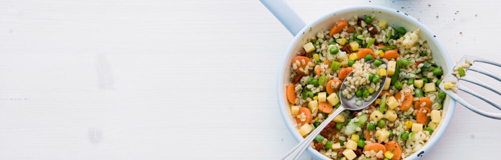 Die gesunden Rezepte sollen außerdem möglichst wenig Zucker und Fett enthalten. Wenn es mal Nudeln oder Produkte aus Mehl geben soll, bitte darauf achten, dass sie aus Vollkorn- statt Weißmehl bestehen. Das kostet nur minimal mehr, enthält aber mehr Nährstoffe und hält dich zudem länger satt! Bei haltbaren Lebensmitteln, wie Pasta, Couscous und Bulgur, kannst du auf die Eigenmarken der Supermärkte zurückgreifen – sie kosten weniger als teure Marken-Produkte. Dazu kombinierst du frische Zutaten und fertig ist das gesunde Essen, das trotzdem lecker schmeckt!