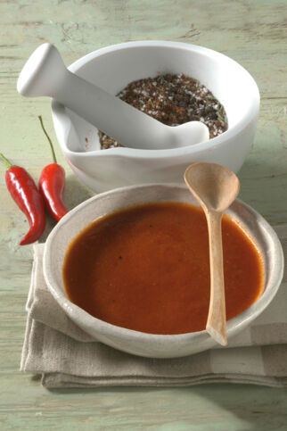 Darunter versteht man getrocknete und zerkleinerte Pflanzenteile, die dank ihrer Inhaltsstoffe den Geschmack unseres Essens verbessern können und/oder bekömmlicher machen. Den natürlichsten Geschmacksverstärker überhaupt, das Salz, können wir eindeutig zuordnen. Andere machen es uns schon schwieriger. Blattgewürze wie z. B. Thymian oder Basilikum werden im frischen Zustand zu den Kräutern gerechnet, im getrockneten zu den Gewürzen. Die Grenze zwischen Gewürzen und Gemüse ist hingegen nicht so leicht zu ziehen. Rote Chili- und Paprikaschoten werden frisch als Gemüse, getrocknet und gemahlen als Gewürz verwendet. Ingwer dagegen wird sowohl frisch wie auch getrocknet als Gewürz verstanden. Sobald Gewürze zerstoßen, gerieben oder gemahlen werden, setzen sie ihre ätherischen Öle frei. Dann entfalten sie ihr Maximum an Aroma und Geschmack.