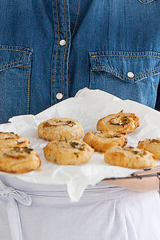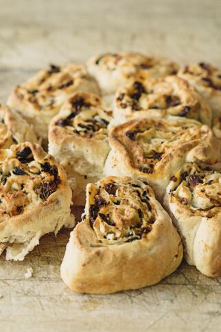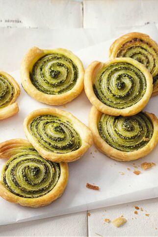 Am schnellsten gehts, wenn du fertigen Blätterteig, Pizza- oder Hefe-Teig aus dem Supermarkt nimmst, aber natürlich kannst du ihn auch selber machen. Auch Flammkuchen- oder Strudelteig kann für dein Rezept verwendet werden. Anschließend rollst du den Teig gleichmäßig und quadratisch auf einer bemehlten Fläche aus, belegst ihn mit deinen Lieblings-Zutaten und rollst ihn von der langen Seite vorsichtig auf. Jetzt musst du nur noch dicke Scheiben herunter schneiden und sie auf ein mit Backpapier ausgelegtes Backblech verteilen. Ggf. nochmal mit Salz und Pfeffer würzen und im vorgeheizten Ofen backen (genaue Back-Zeiten und Temperaturen siehe im jeweiligen Rezept).