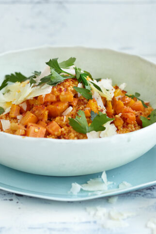 Normalerweise wird für ein klassisches Risotto ja spezieller Risottoreis aus Italien verwendet, aber auch die regionale Getreidesorte Hirse lässt sich super zu dem cremigen Gericht verarbeiten. Hirse schmeckt nämlich nicht nur genauso lecker, sondern ist auch noch nährstoffreicher als Reis - also eine Win-Win-Alternative.