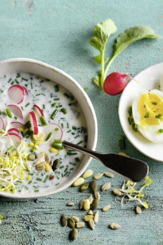 Neben den Obstkaltschalen gibt es auch Milchkaltschalen, die Joghurt, Buttermilch oder (Dick- oder Sauer-) Milch als Grundzutat haben. Natürlich haben wir auch dafür Rezepte dabei, z. B. unsere Sauermilchkaltschale.
