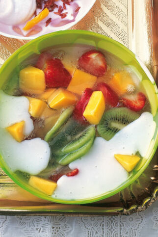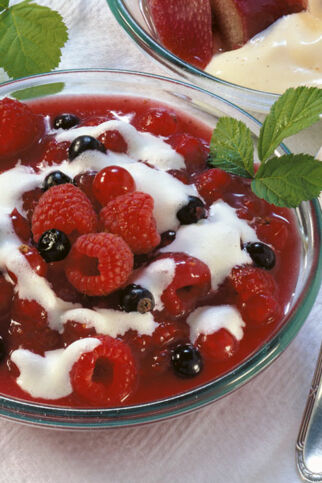 Fruchtige Kaltschalen sind das ideale, erfrischende Dessert auf einem Party- oder Brunch-Büffet an heißen Sommertagen. Dazu schmeckt Vanillesauce, Vanille-Joghurt oder Schlagsahne.