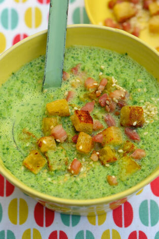 Wer größere Mengen zubereitet, kann die Kaltschalen einige Tage im Kühlschrank aufbewahren. Den gewissen Pfiff erlangen sie durch eine Dekoration mit Croûtons oder Beilagen-Spießen mit Parmaschinken oder Garnelen.