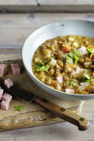 Zweierlei Linsen mit Hähnchen-Kasseler