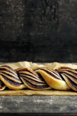 Je nach Rezept wird auch getrickst, etwa mit fertigem Blätterteig aus dem Kühlregal, aus dem du viele leckere Naschereien zaubern kannst, zum Beispiel ein schnelles Schoko-Brot mit 2 Zutaten. Hier bestreichst du den ausgerollten Blätterteig mit Nuss-Nugat-Creme, rollst ihn dann auf und schneidest die Rolle in der Mitte längs auf. Die beiden Teighälften miteinander zu einem Zopf verflechten und im Ofen goldbraun backen. Danach wirst du dir die Finger lecken.