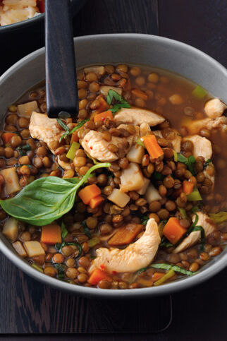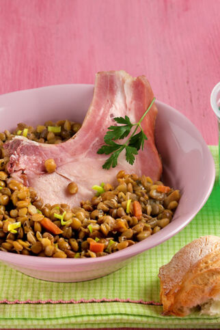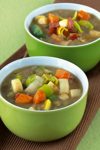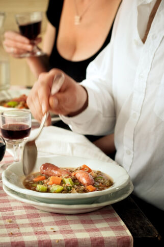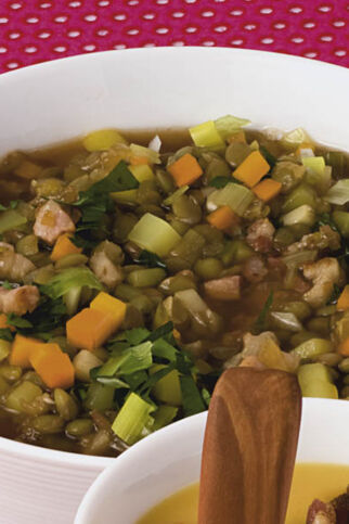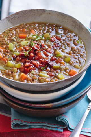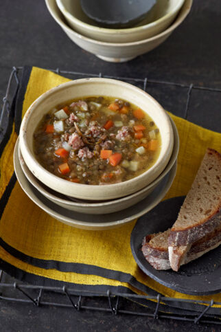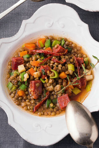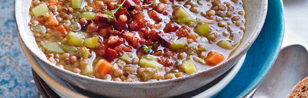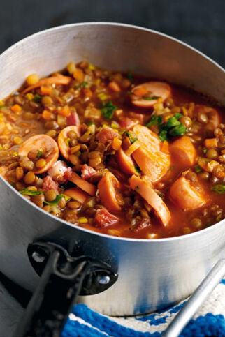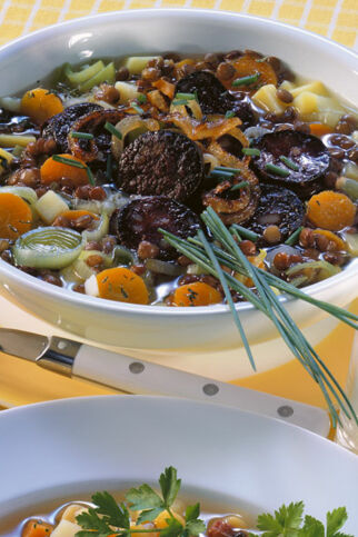 Feiner Berglinseneintopf mit Gemüse und Würstel