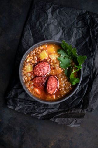 Schneller Rote-Linsen-Eintopf mit Kabanossi