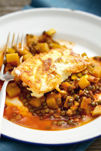 Gemüse-Linsen-Eintopf mit Pfannenfeta