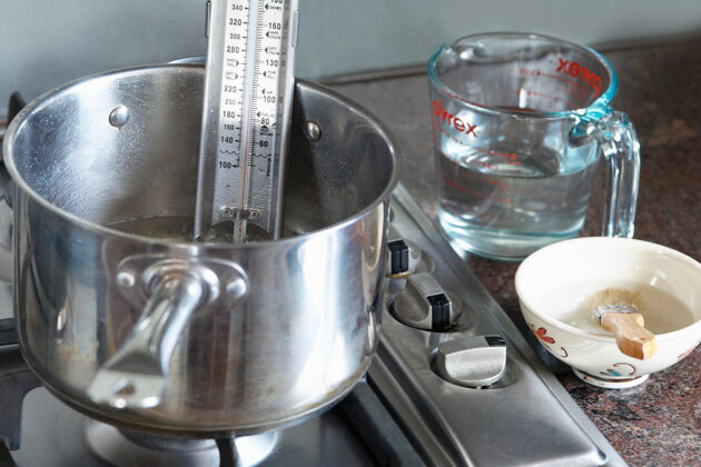 Arbeiten Sie bei der Herstellung unbedingt mit einer hitzefesten Schüssel. Da mit heißem, flüssigem Sirup gearbeitet wird, besteht sonst die Gefahr, dass die Schüssel schmilzt.