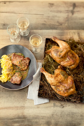 Gratinierte Medaillons sind ebenfalls recht einfach in der Handhabung, denn hier macht der Backofen die Hauptarbeit. Beim Fenchelgratin mit Putenmedaillons wird Fenchel in ganz dünne Scheiben geschnitten und in eine Auflaufform gelegt. Darauf kommen Spätzle und gut gewürzte, halbierte Putenschnitzel. Jetzt wird nur noch Sahne mit Kräutern verquirlt und in die Form gegossen. Emmentaler obenauf streuen und ab in den Ofen – nach 20 Minuten ist das Genussrezept fertig.