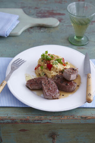Wie bei den Profiköchen gelingen dir die Medaillons, wenn du sie nach dem Anbraten in der Pfanne noch im Ofen weitergarst. Zum Schluss solltest du das Fleisch an einer warmen Stelle noch kurz ruhen lassen, damit sich der Fleischsaft gleichmäßig im ganzen Stück verteilt und beim Anschneiden nicht herausläuft. Serviere die Medaillons auf vorgewärmten Tellern.