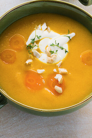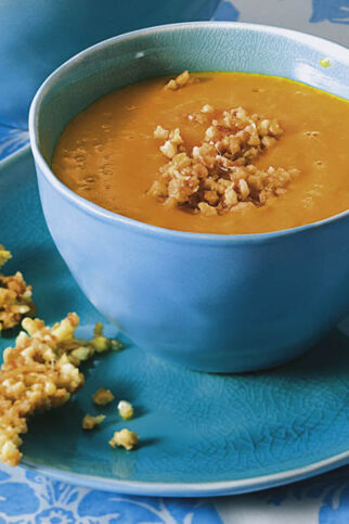 Möhrensuppe mit Mandel-Ingwer-Knusper
