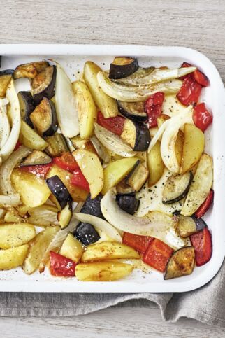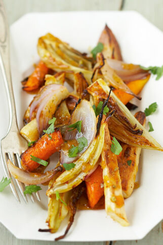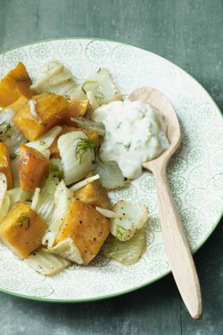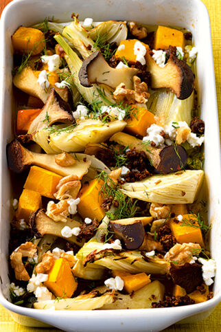 Schnelles Ofengemüse mit Kürbis und Fenchel