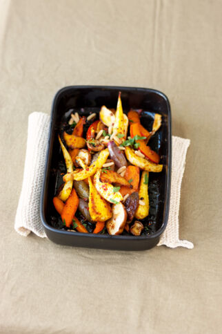 Salat aus gebackenem Ofengemüse mit Orient-Dressing
