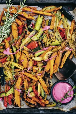 Schnelles Ofengemüse mit Tomaten-Ziegenkäsecreme