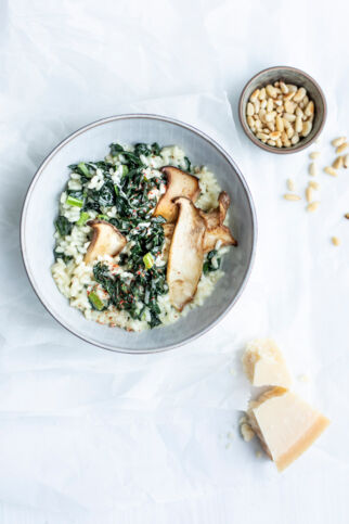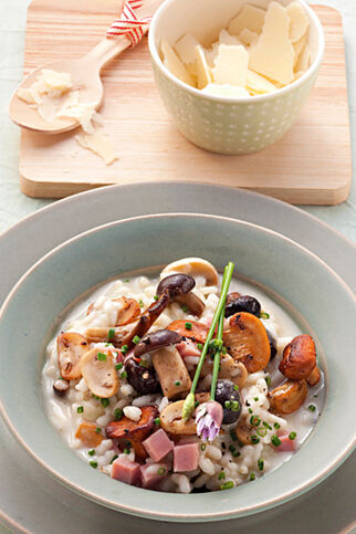 Probiere doch mal unser Herbstrisotto mit Austernpilzen oder dieses feine Pilzrisotto mit gekochtem Schinken und Parmesan.